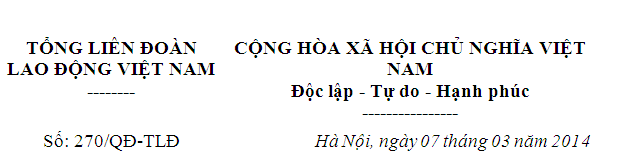 (Ban hành kèm theo Quyết định số 270 /QĐ-TLĐ ngày 07 tháng 03 năm 2014 của Đoàn Chủ tịch Tổng Liên đoàn)