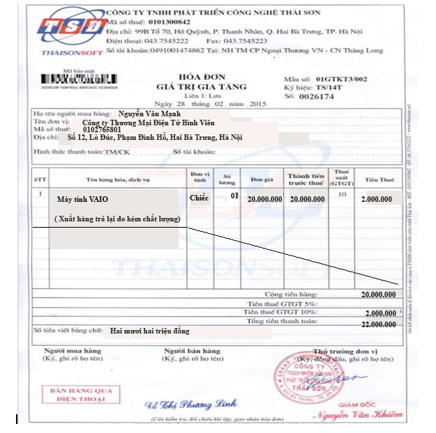 “2.8. Tổ chức, cá nhân mua hàng hóa, người bán đã xuất hóa đơn, người mua đã nhận hàng, nhưng sau đó người mua phát hiện hàng hóa không đúng quy cách, chất lượng phải trả lại toàn bộ hay một phần hàng hóa, khi xuất hàng trả lại cho người bán, cơ sở phải lập hóa đơn, trên hóa đơn ghi rõ hàng hóa trả lại người bán do không đúng quy cách, chất lượng, tiền thuế GTGT (nếu có).