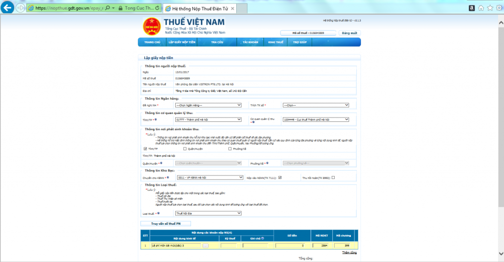 Hướng dẫn sử dụng lập GNT đối với nộp lệ phí môn bài.