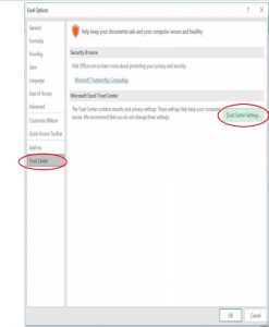 Tiếp đến các bạn vào Trust Center >>> Trust Center Settings