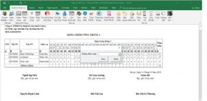 Sau khi khai báo các thông tin nhân viên xong ta tiến hành chấm công cho từng tháng kích vào nút Chấm công để vào bảng chấm công
