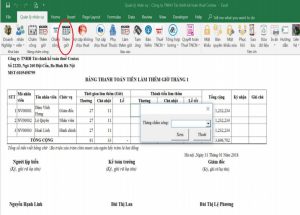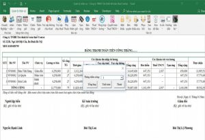 Ở phần báo cáo ta có thể xem bảng chấm công thêm giờ, trợ cấp chịu thuế, không chịu thếu, làm thêm giờ, bảo hiểm… bằng cách kích vào nút và ấn F1, chọn tháng cần xem bảng biểu, nhấn Xem bảng chấm công