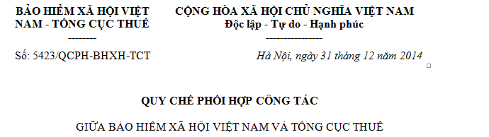 Bảo hiểm xã hội Việt Nam và Tổng cục Thuế thống nhất quy chế phối hợp công tác với các nội dung sau: